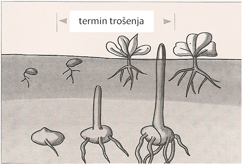 Slika: Čas uporabe apnenega dušika pri gnojenju po setvi (malo pred vznikom ali takoj po vzniku)