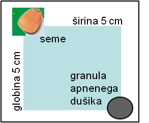 Granule gnojila je potrebno odložiti v razdalji najmanj 5 cm pod semenom in 5 cm v vrsti ob semenu.