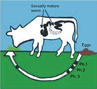 Jajčeca glist se v tleh razvijajo v treh razvojnih fazah larve (ph. 1, ph. 2 in ph. 3). Larve ostanejo aktivne v tleh do enega leta. Če ne ukrepamo proti parazitom, lahko pride do povečanega števila jajčec v tleh, ki predstavljajo veliko nevarnost za čredo, ki se pase.